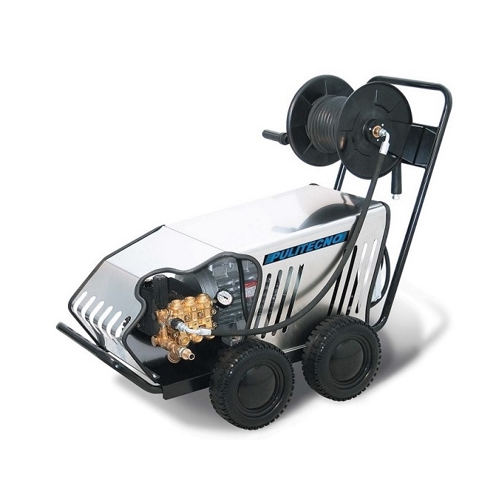 Pulitecno MAXI 1 RK 200.15 je vysokotlaký profesionální čistič, vyrobený na stabilním robustním ocelovém podvozku s koly a krytem z nerezové oceli. Profesionální vysokotlaké čerpadlo A.R s keramickými písty a mosaznou hlavou, pro dlouhodobý bezproblémový provoz stroje. Tento kvalitní a dlouhodobě spolehlivý model vysokotlakého čističe je vhodný pro všestranné použití v průmyslovém prostředí, ve stavebnictví, zemědělství, atp. Vybaven systémem ochrany STT (STOP SYSTEM - při nečinnosti stroje). Vestavěný manometr tlaku. Vysokotlaký čistič je možné dále vybavit: turbokladivem (rotační tryska), aj. Doprava a zaškolení obsluhy po celé ČR - zdarma.