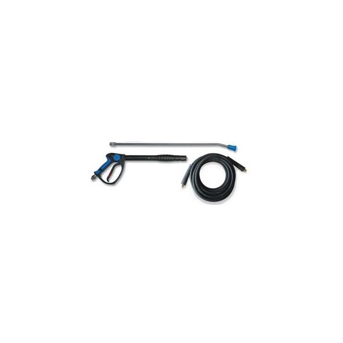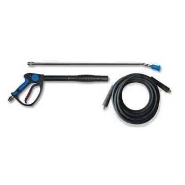 Příslušenství v ceně stroje: vysokotlaká hadice o délce 10 m s otočným šroubením, vysokotlaká pistole s prodloužením + nástavec, vysokotlaká tryska.